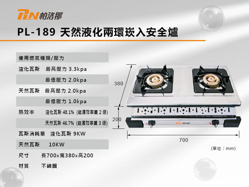 PL-189 天然 PL-189A液化 兩環崁入安全爐